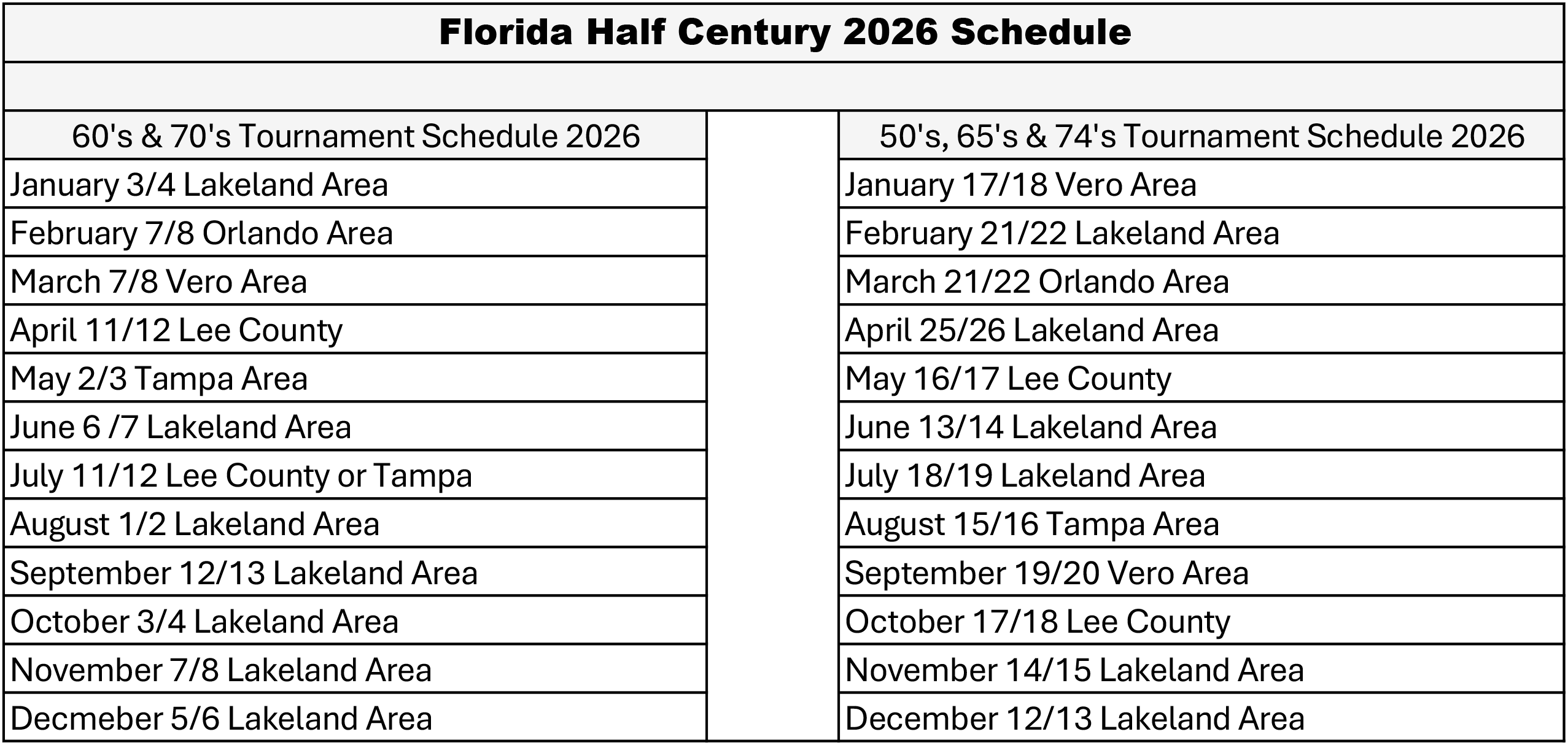 to download our 2026 50's & 65's and 60's & 70's Tournament Schedules