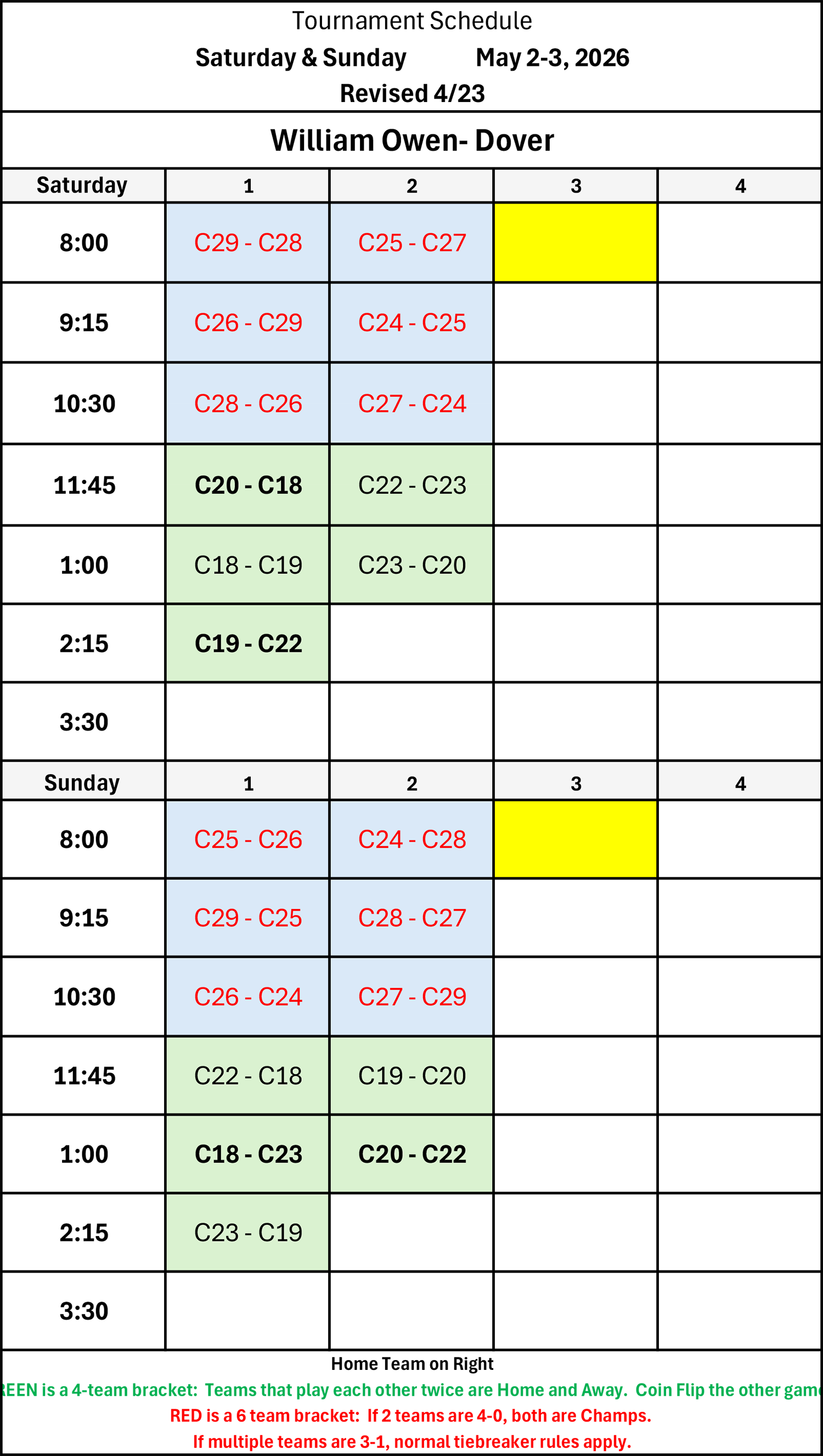 | 9:15 | A36 - A42 | A40 - A39 | A34 - A35 | A33 - A31 |